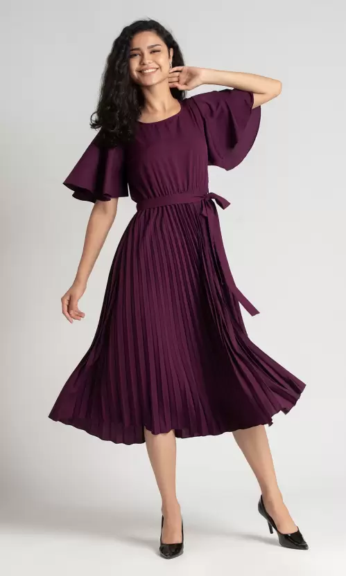 Women Fit and Flare Purple Dress